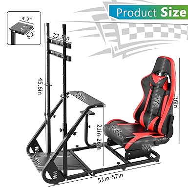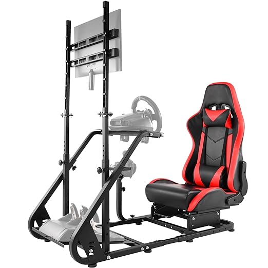 Hottoby Adjustable Sim Racing Cockpit with Red Seat Monitor Frame Fit for Logitech/Thrustmaster/Fanatec G920 G923 G29 T80,Frame Double Arm Reinforcement,No Steering Wheel,Pedal,Handbra