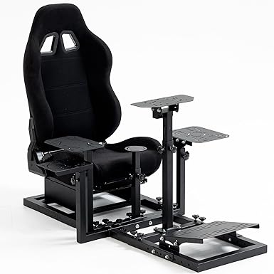 Hottoby Flight Racing Simulator Cockpit with Black Seat Adjustable&Shifter Platform Upgrade Fit for Logitech/Thrustmaster/Hotas Warthog G29,G920,X52,PXN Multi-Function&Stable,Includes Frame Seat Only