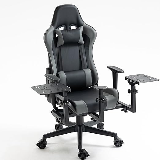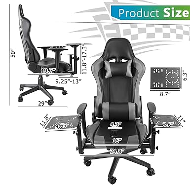 - 【Gray Seat】Made of leather, not easy to get dirty; seat backrest adjustment angle is 90-175 degrees; elbow and waist support points.